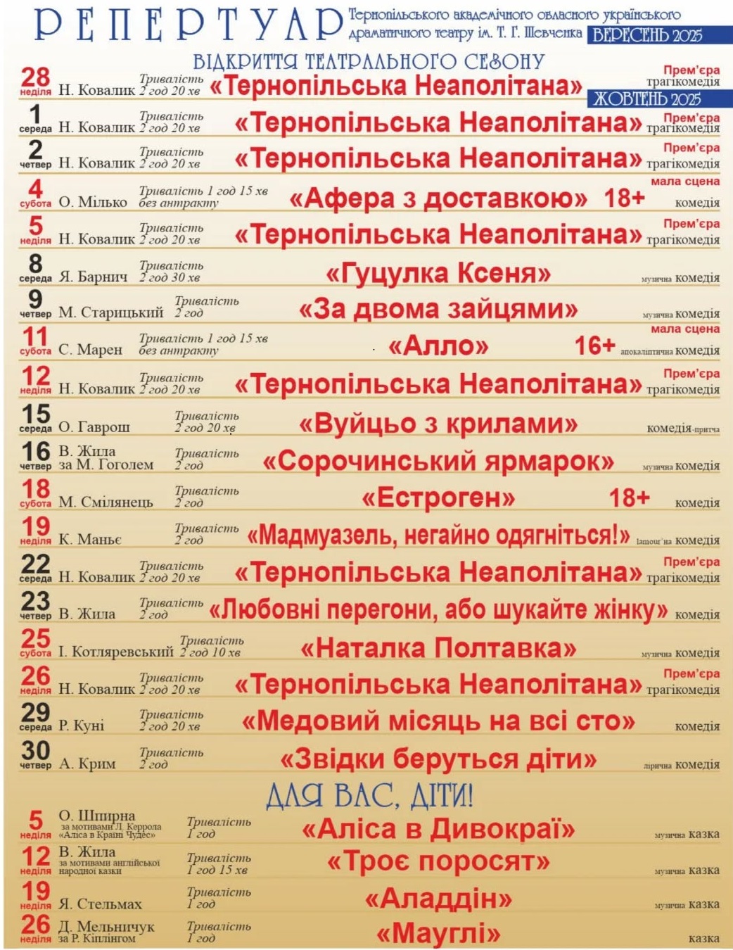 «Тернопільською Неополітаною» 28 вересня розпочнуть 96-ий театральний сезон «шевченківці».