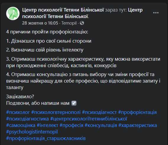 Три години профорієнтаційної діагностики у Центрі психології Тетяни Білінської дали чітку відповідь.