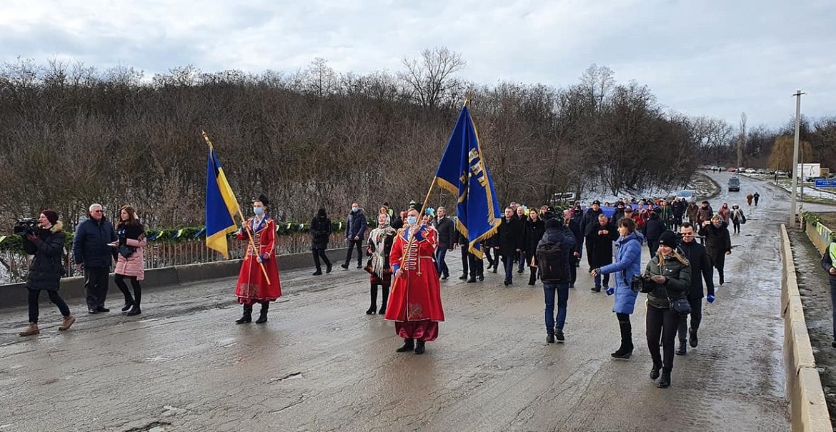 22 січня такі заходи відбувались вздовж усього західного кордону Тернопільської області. А головні урочистості розпочалися з ходи та зустрічі на мосту через річку Збруч між селом Гуків, що на Чемеровеччині, та селищем Скала-Подільска Чортківського району Тернопільської області, пишуть на сайті https://prozahid.com/
