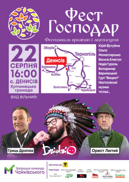 У неділю, 22 серпня, в селі Денисів Купчинецької територіальної громади компанія «Агропродсервіс» запрошує на фестиваль урожаю та мистецтв «Фест Господар».