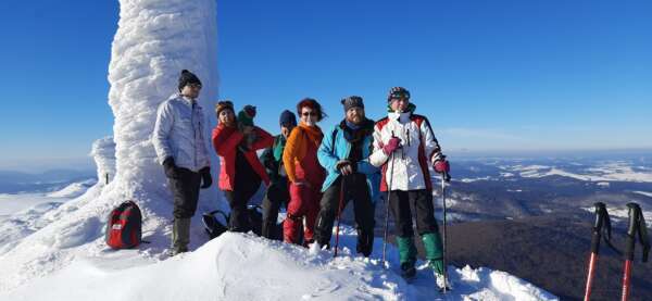 Ой, ті гори Карпати! Вершину близько видати, та далеко до неї дибАти. Глянеш, та ось рукою подати. І ніби й не високо-1408 метрів над рівнем моря. Та що там? Коли на  двотисячники не так давно піднімалися. А йти довелося світловий день, туди і назад при майже метровому снігу. Нам дуже пощастило, що ми не першими йшли милуватися  цим мальовничим куточком Карпатських гір. Стежка уже була, головне, не оступитися, бо потім треба з того полону снігового вибиратися, витрачаючи сили і час. Але світлини так хочеться робити, красу цю запам’ятати всіма фібрами душі, насолодити найкращого і найвишуканішого фотографа-свої очі, щоб запам’ятати і жити з цим. Для мене це особливе  сприйняття, з яким проживаю кожен похід  з відкладанням  глибоко в душі камертону спілкування з групою відчайдух, закоханих у  туризм, смаків, звуків, температур…