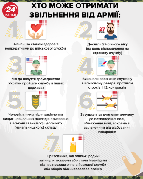 Хто може отримати повне звільнення від армії. Інфографіка 24 каналу