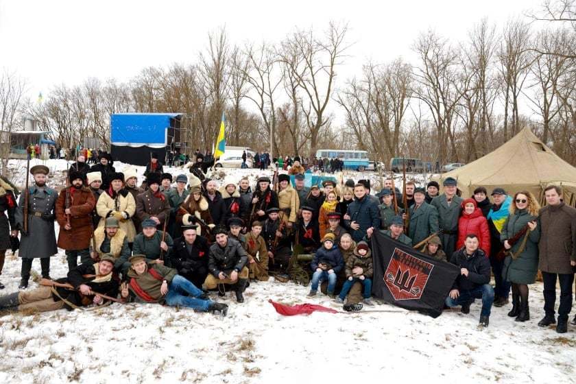 Понад чотири десятки військових з обох боків. Кулемети, гвинтівки… Дим й переможне «Слава Україні!»… Усе настільки достовірно, що мимоволі задумуєшся: 2021-ий чи 1919-ий надворі…