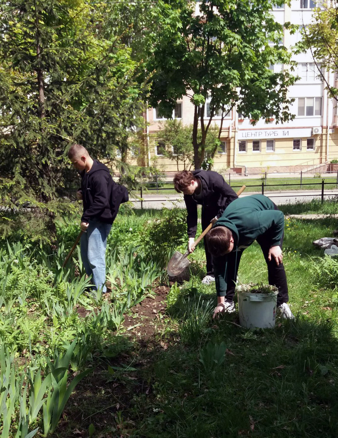 - «Щойно зійшов сніг, як ми дружньо знову взялися до роботи, – акцентує ініціаторка й організаторка екоакції, заступниця голови Тернопільського міського об’єднання ВУТ «Просвіта» імені Тараса Шевченка, викладачка української мови та літератури ВСП «Тернопільський фаховий коледж ТНТУ ім. Івана Пулюя» Галина Шот. – Працівники господарської служби коледжу покосили траву, а ми спільно зі студентами Демʼяном Гайналієм, Михайлом Вигінним, Дмитром Іваницьким, Віталієм Марковиче, Олексієм Козаком прибрали територію, винесли сміття, обкопали, посапали клумби й засіяли квіти…»