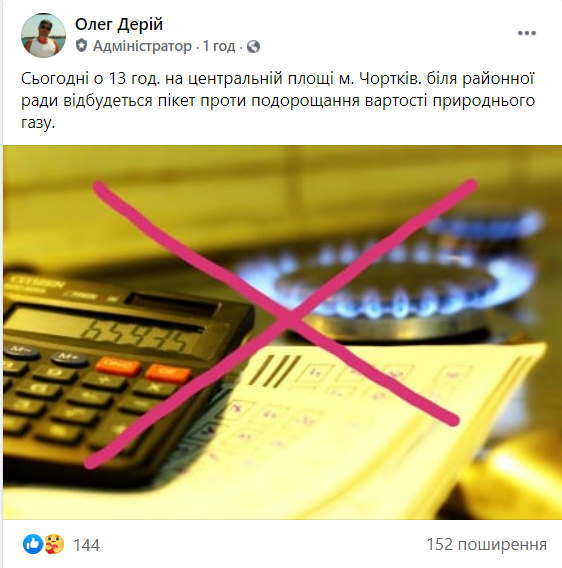 А в вже о 13.00 акція протесту  розпочнеться в Чорткові. Під стіни РДА прийдуть чортківчани з пікетом проти подорожчання вартості природного газу.