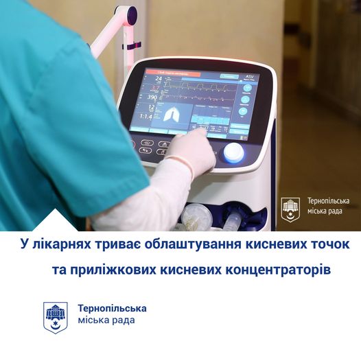 - У КНП «Тернопільська міська комунальна лікарня швидкої допомоги» 16 апаратів ШВЛ, 30 діючих кисневих точок і 27 мобільних приліжкових кисневих концентратори. Заплановано придбати ще 22 таких концентратори для лікарні. Також у медичному закладі встановлено та вже функціонує стаціонарний кисневий генератор, який забезпечує виробництво і подачу кисню;
