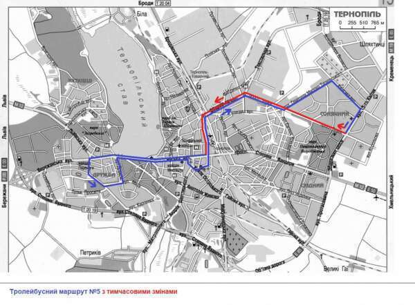 маршрут №5 від перехрестя Злуки – 15 Квітня рухатиметься проспектом Злуки, вулицями Збаразька, Б. Хмельницького, Руська, далі по маршруту;
