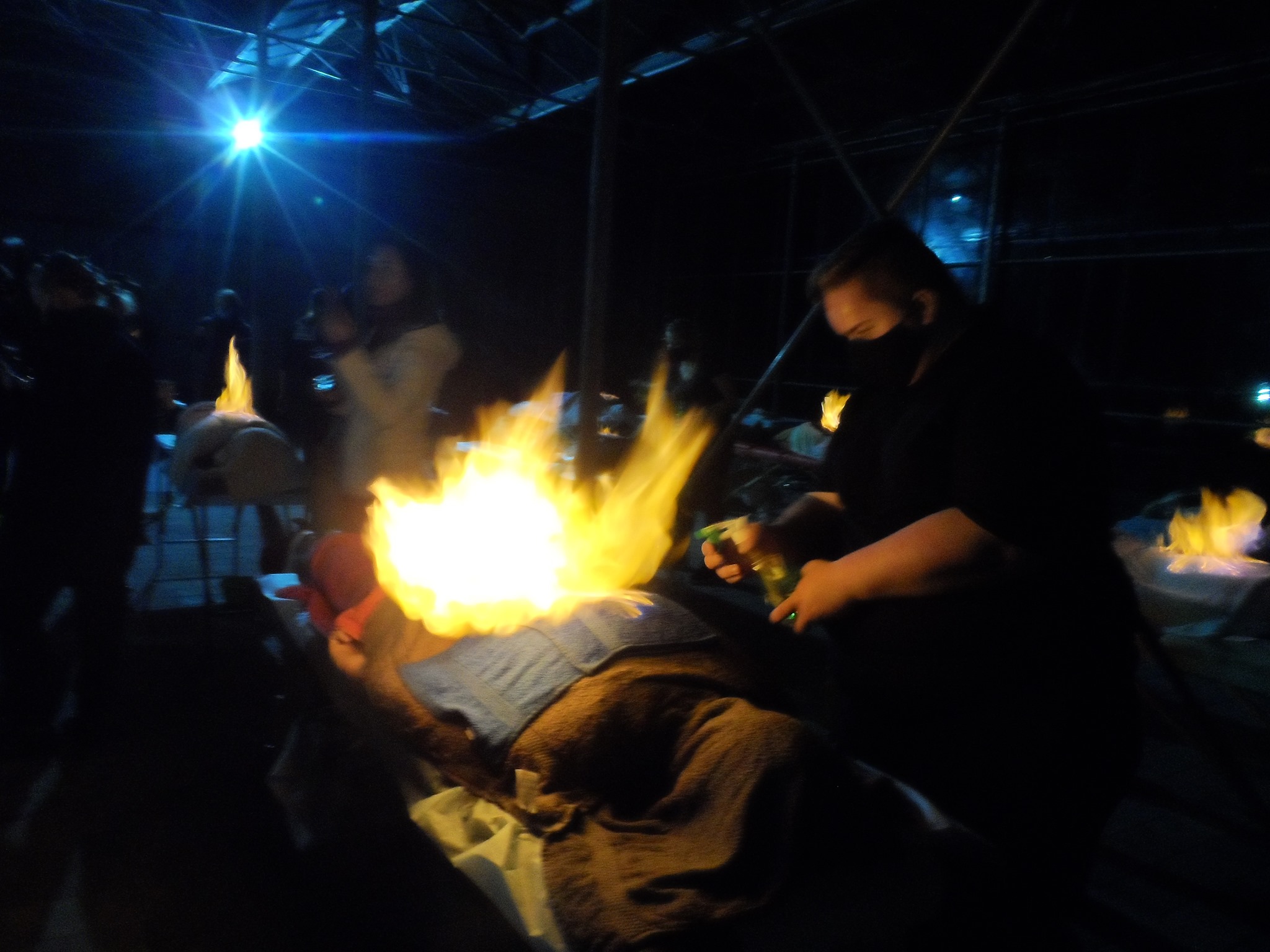 Оздоровчий вогонь масажисти «розклали» як на кремезних спинах байкерів, так і тих, хто бажав випробувати масаж на собі. Полум’я палало 5 хвилин. Саме ж  екзотичне дійство тривало в  «КвітоЦентрі»  25 хвилин.