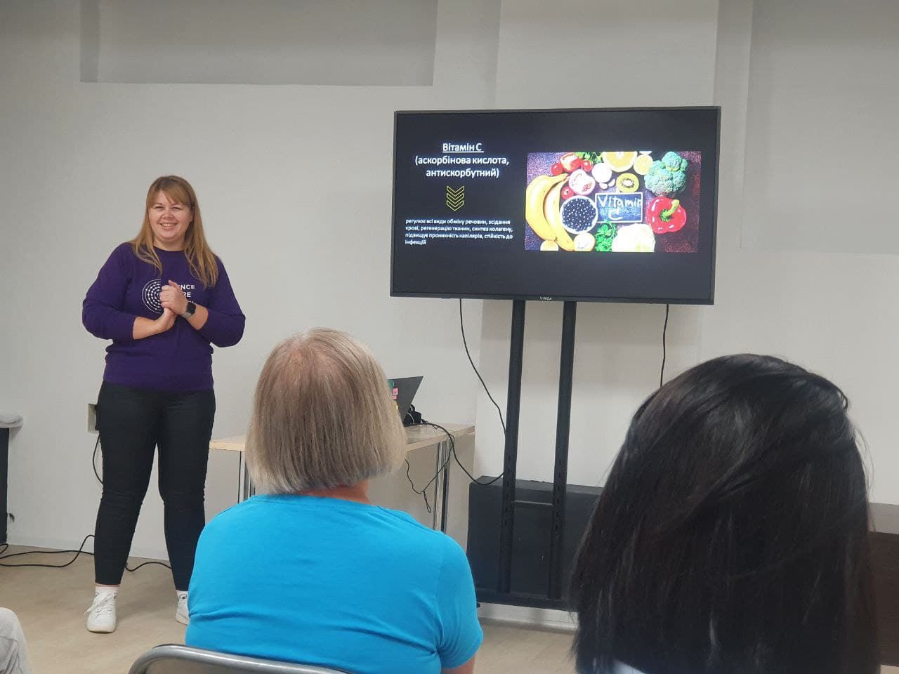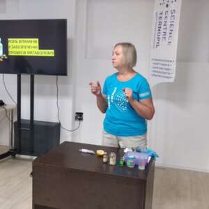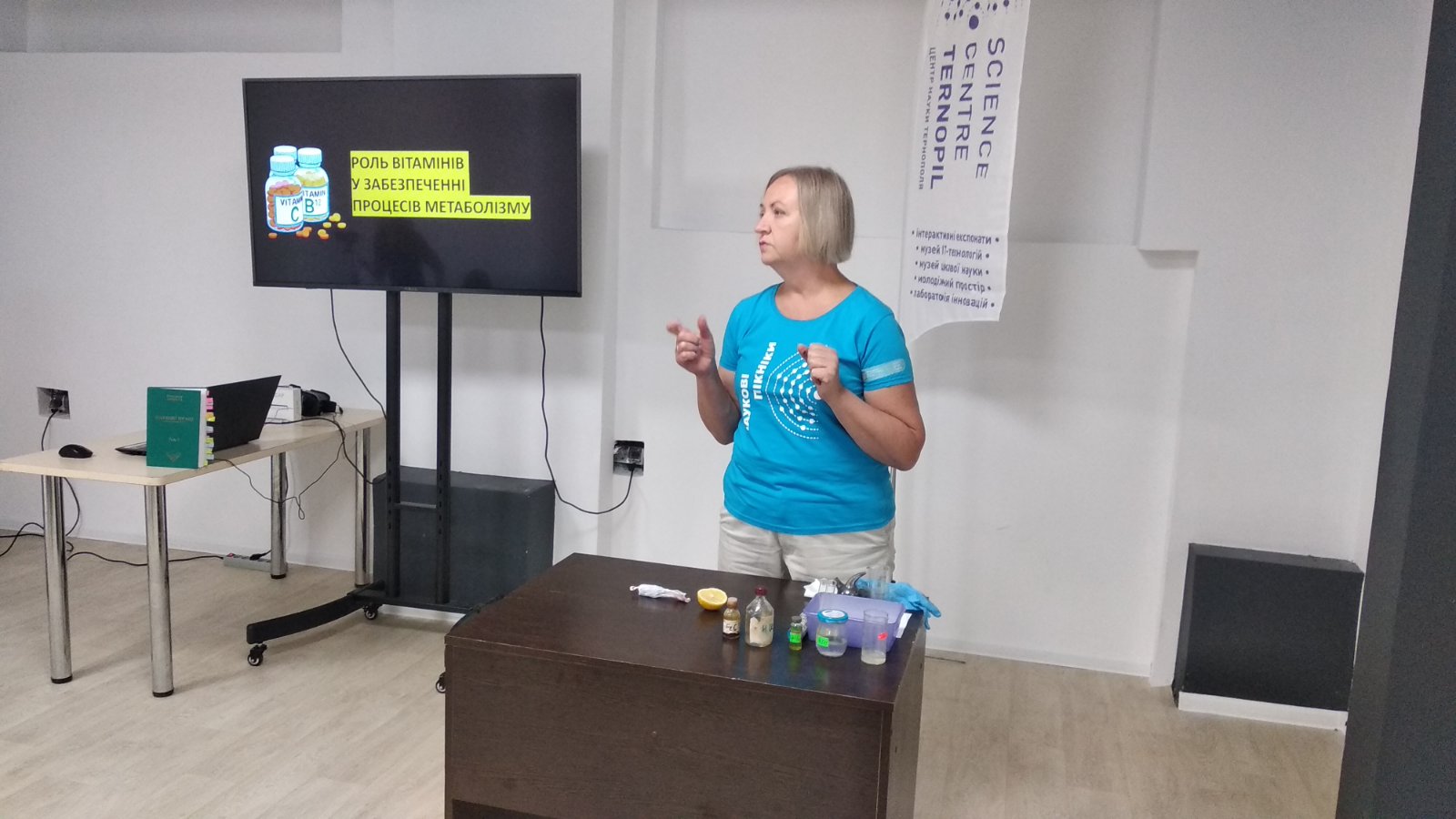 Викладачі ж Галицького коледжу ім. В’ячеслава Чорновола Тетяна Нападій та Ольга Спільниченко наголосили присутніх на ролі вітамінів в обміні речовин, заінтригували грою-загадкою та залучили до міні-лабораторії на визначення вітаміну С.