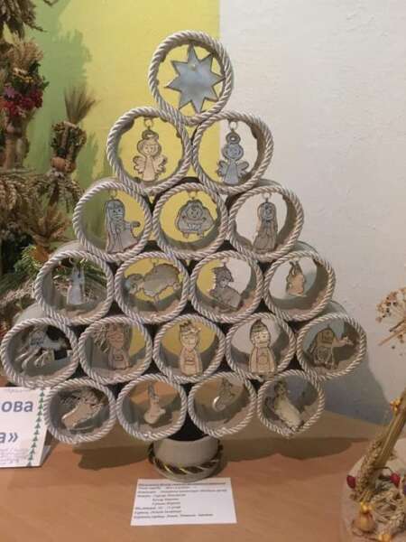 Серед новорічно-різдвяних композиції є оригінальні, а є традиційні. Поряд вироби зі звичних матеріалів – шишки, ялинкові віти, дерево, тісто, сіно, солома, кукурудза та  експерименти з використанням нових дизайнерських технік. Також тут можна побачити роботи, присвячені давнім українським традиціям – дідухи та різдвяні вертепи, витинанка та печиво. Є частина робіт, яка використовує вторинні ресурси – картон, папір, пластик. Традиційно є роботи присвячені символу наступаючого року – бику. Бик-віл колись був основою сільського господарства, томувихованці гуртка “Виготовлення сувенірів” Великобірківського будинку тіорчості школяра зобразили його з возом. Бик зі шпагату та мішковини везе міхи зі здоров’ям, щастям, добром – техніка “джгутова філігрань, керівник Наталя Михайлівна Новікова.