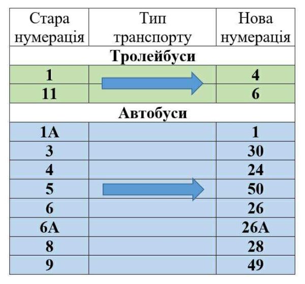 Ці зміни — це не скасування маршрутів, а лише зміна їх номерів.