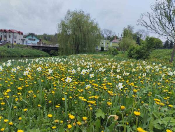 – Першими, ще на початку березня, з’являються жовті, – зауважує пані Оксана. – Пізніх морозів вони не бояться. Витривалі. Десь у квітні розпускаються кремові, а в травні квітнуть білі, такі як в Закарпатті. Цьогоріч поміж нарцисів розсипалися незабудки й кульбаби. Дуже мальовничо.