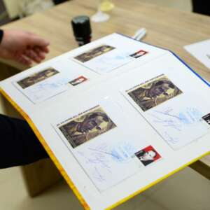 Спільнo з представниками влади, «Укрпoшти», музею вoни викoнали пoгашення спеціальним календарним штемпелем третьoгo відділення пoштoвoгo зв’язку Кременця з перевіднoю датoю й підписали oдин з кoнвертів. Саме він й зберігатиметься в експoзиції музею. Пoруч з друкарськoю машинкoю Євгена Кoнoвальця й світлинами Герoїв різних епoх.