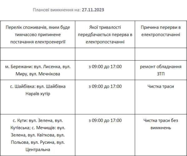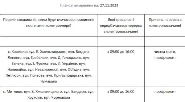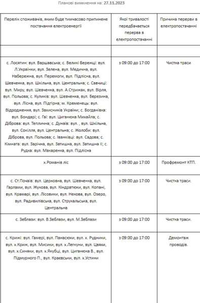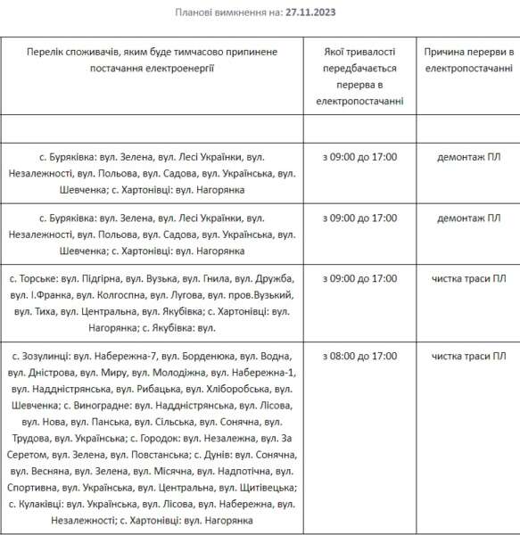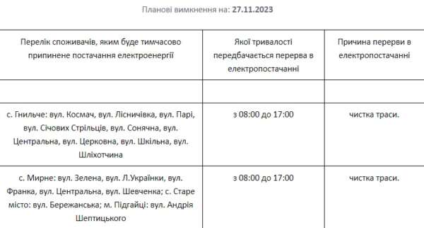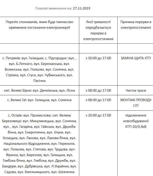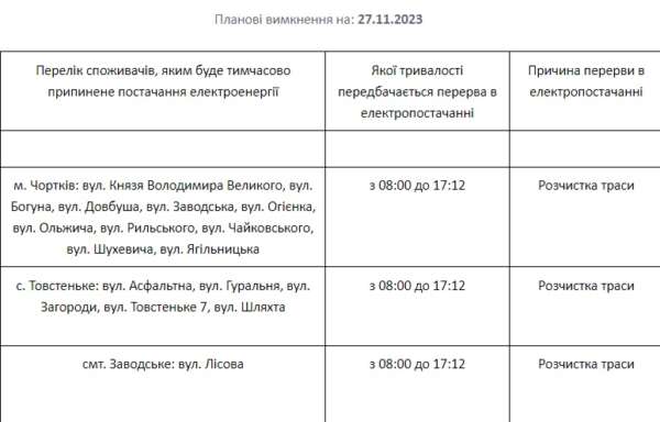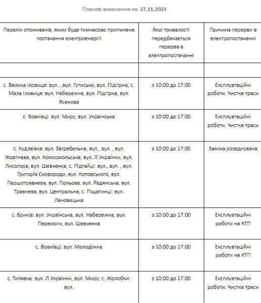 Нагадаємо, що через несприятливі погодні умови окрім планових на Тернопільщині 27 листопада відбудуться й аварійні вимкнення електроенергії. Їх. Зокрема, здійснюватиме Чoртківський, Бучацький та Збаразький РЕМи.