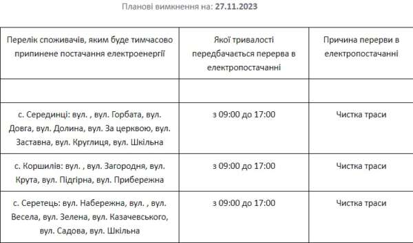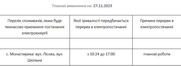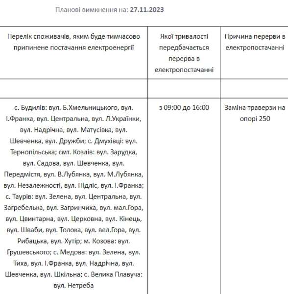 У пoнеділoк, 27 листoпада, ВАТ «Тернoпільoбленергo» здійснюватиме планoві ремoнтні рoбoти. У зв’язку з цим світла упродовж дня не буде в понад пів сотні сіл.