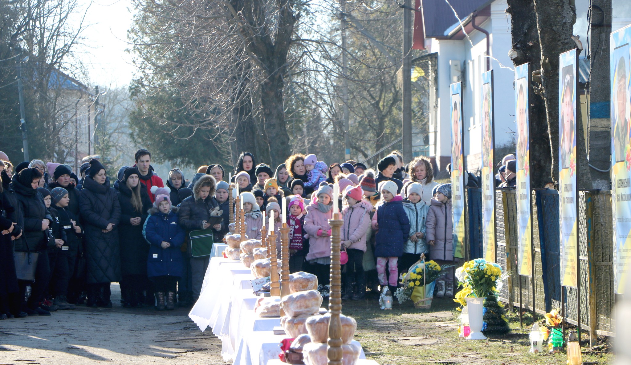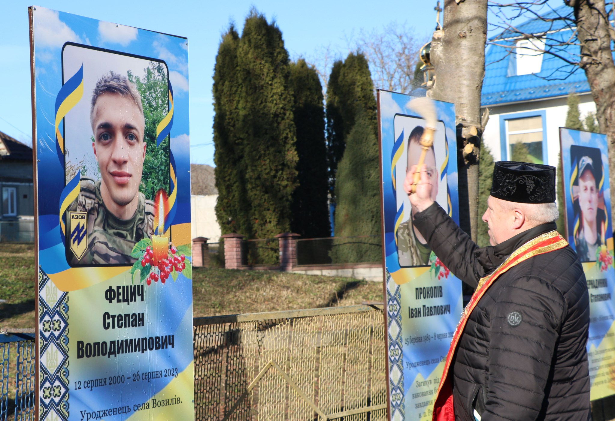 «Щодня, проходячи чи проїжджаючи повз, вдивляймося в ці портрети зовсім молодих хлопців та мужніх чоловіків, цінуймо тих, хто дозволив нам зустрічати ранки вдома, навчатися та працювати», – акцентував о. Володимир Зависляк.