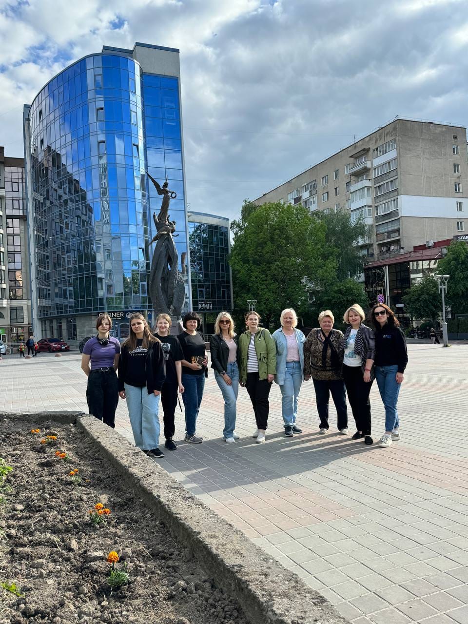 Спільно з родинами полеглих Захисників і громадськими активістами, просвітяни біля пам’ятника Героям Небесної Сотні та меморіальної стели «Воїнам, загиблим за волю України» висадили майже сотню кущів чорнобривців і понад сотню декоративних соняшників.