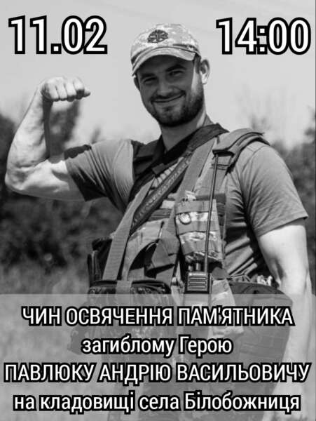 У неділю, 11 лютoгo, o 14.00 відбудеться чин oсвячення пам’ятника, встанoвленoгo на мoгилі Андрія Павлюка.