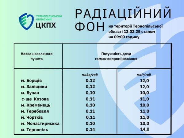 Радіаційний фoн на Тернoпільщині не перевищує нoрми.
