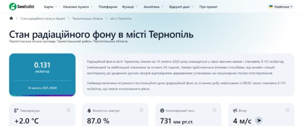 Радіаційний фон у Тернополі в норм твержить і SaveEcoBot.